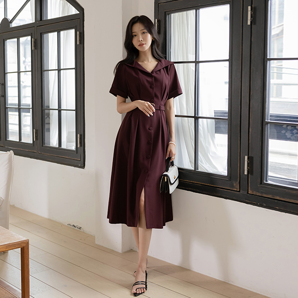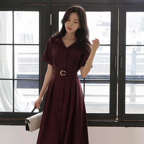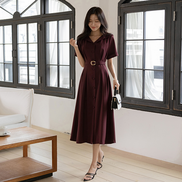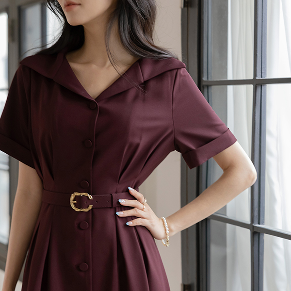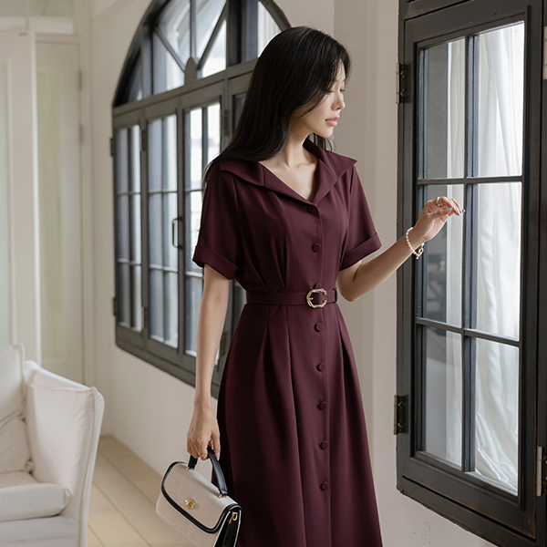 优雅 宽松 领子 腰带 (套装) 连衣裙