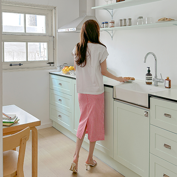 리리 夏天 格子 H字型 弹力 裙子