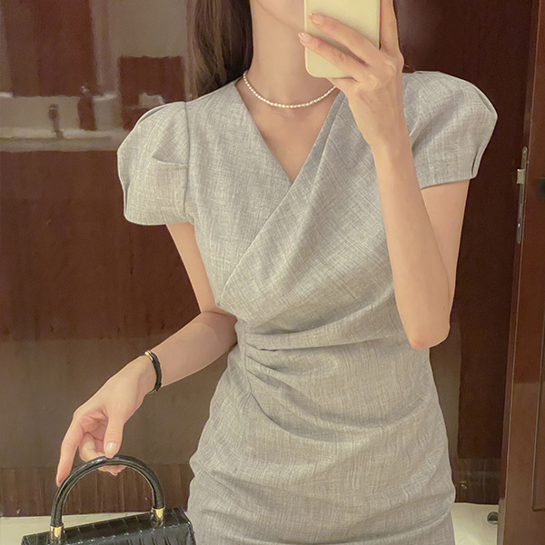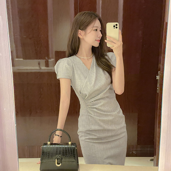 斯利姆 线条 裹身 褶皱 连衣裙