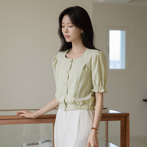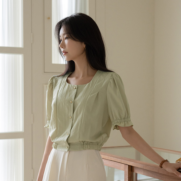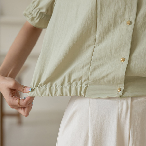 沙沙响 泡泡袖 袖 腰 松紧带 罩衫
