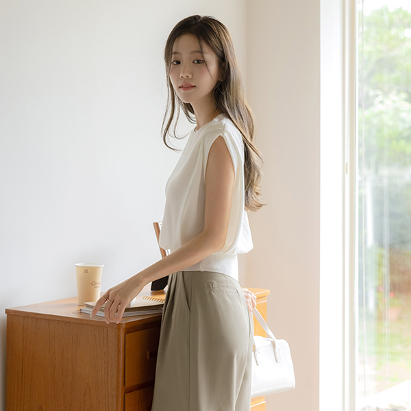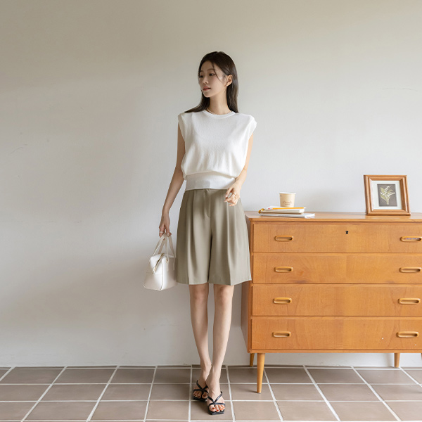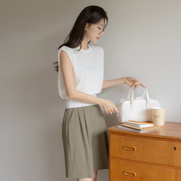 苗条的 覆盖 细褶 圆领 背心 针织衫