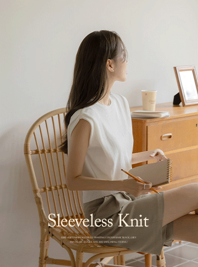 苗条的 覆盖 细褶 圆领 背心 针织衫