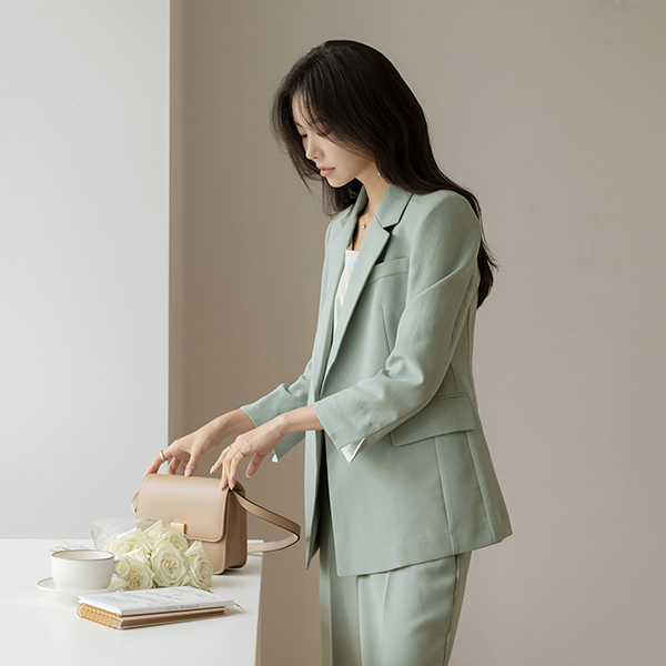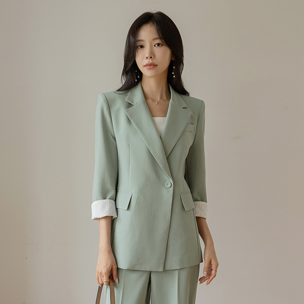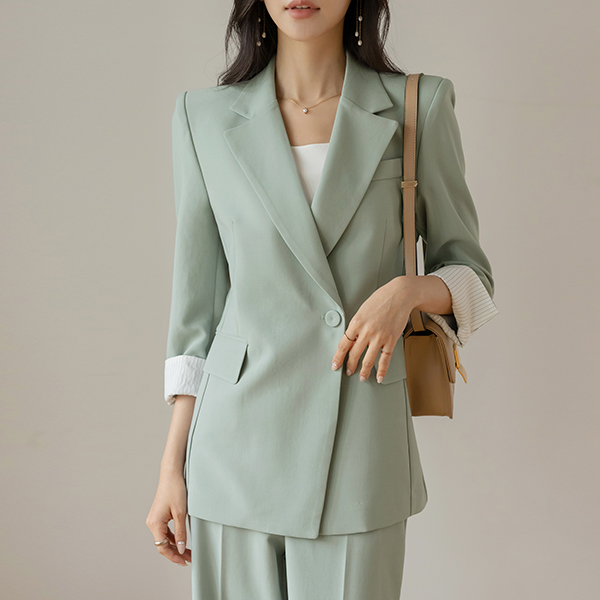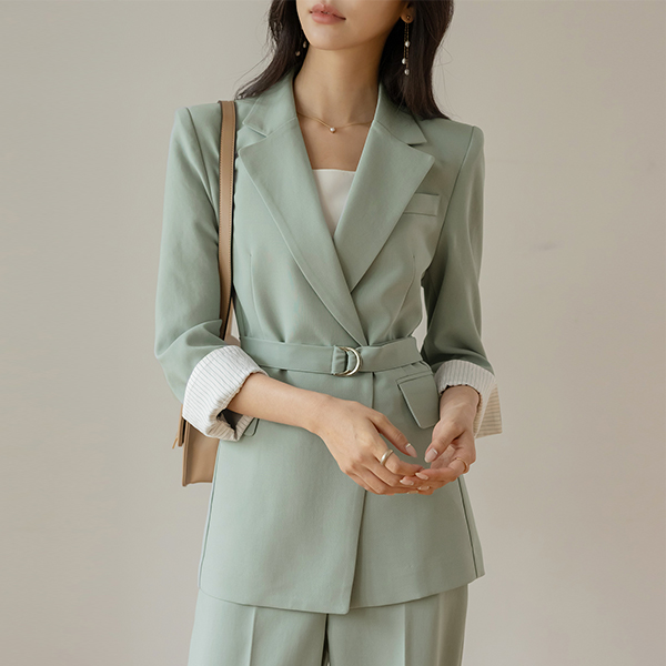 다니엘 配色 袖 D戒指 腰带 (套装) 夹克