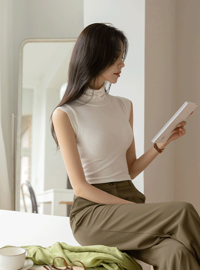 细密 Cheese 弹力 高领 背心T恤