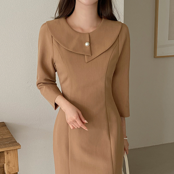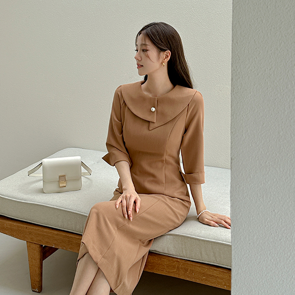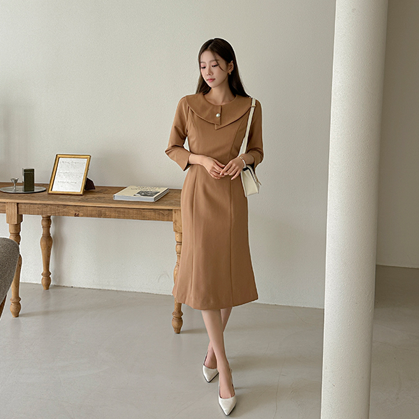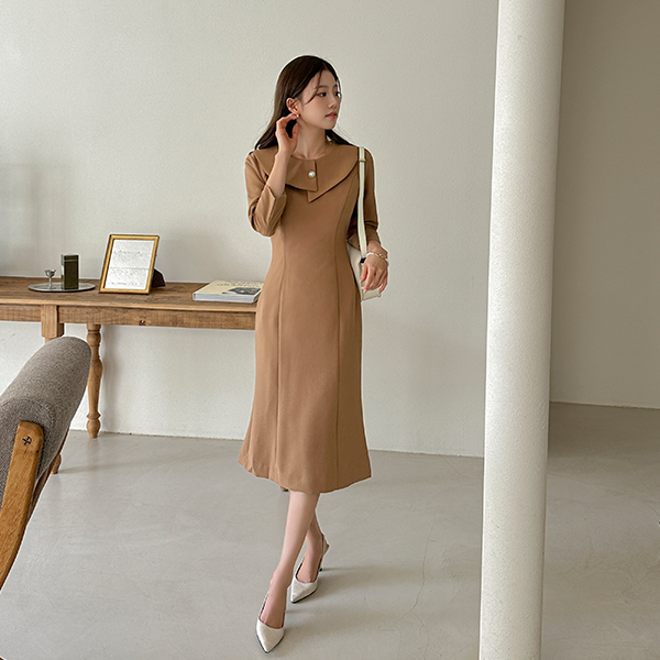 放松 와이드 넥 开衩 连衣裙