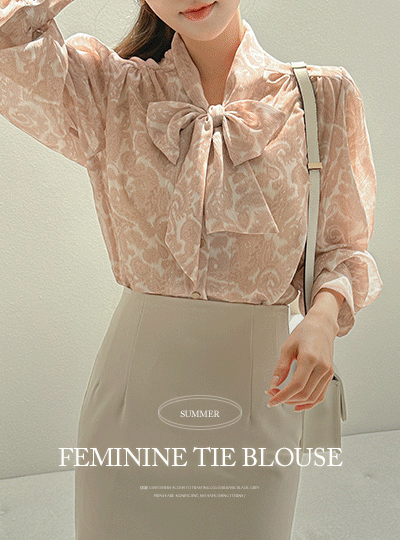 女性化的 领带 印染 罩衫