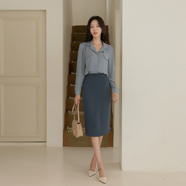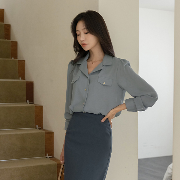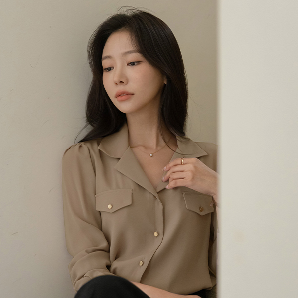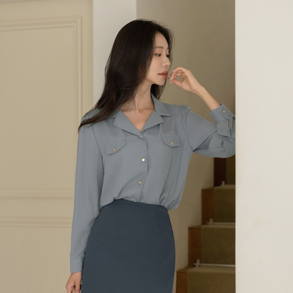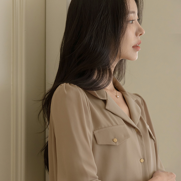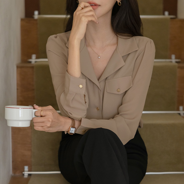 畦编针织物 双 口袋 黄金 扣子 罩衫
