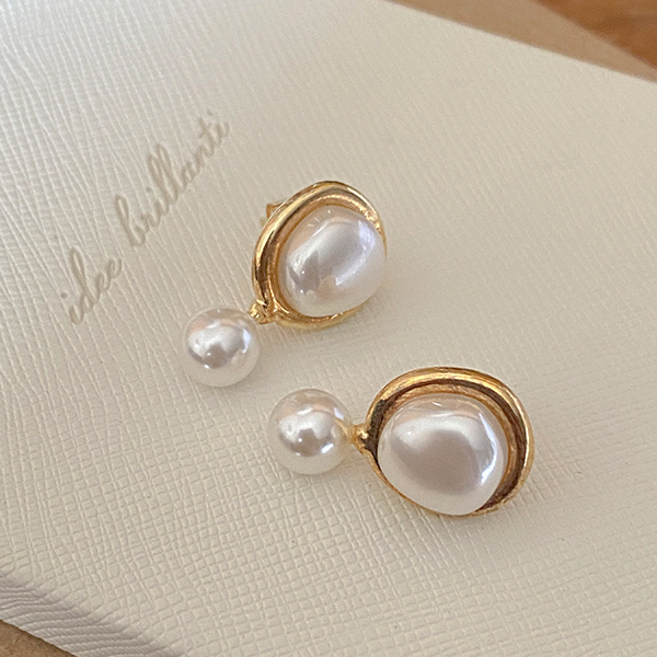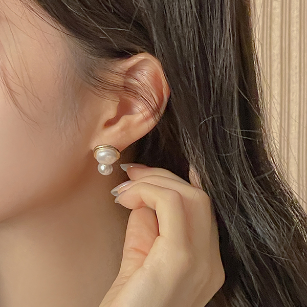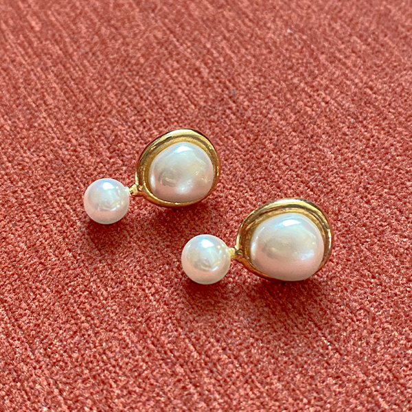 黄金 圆形 吊坠 珍珠 耳环