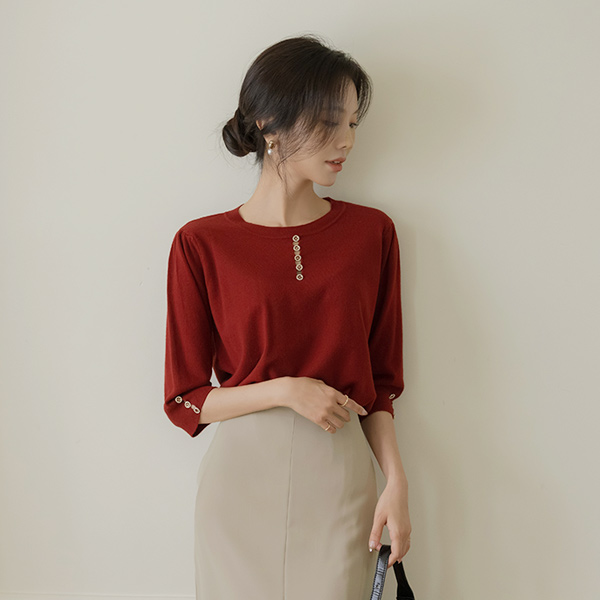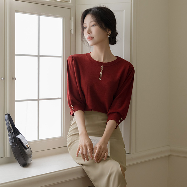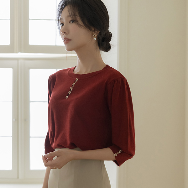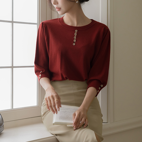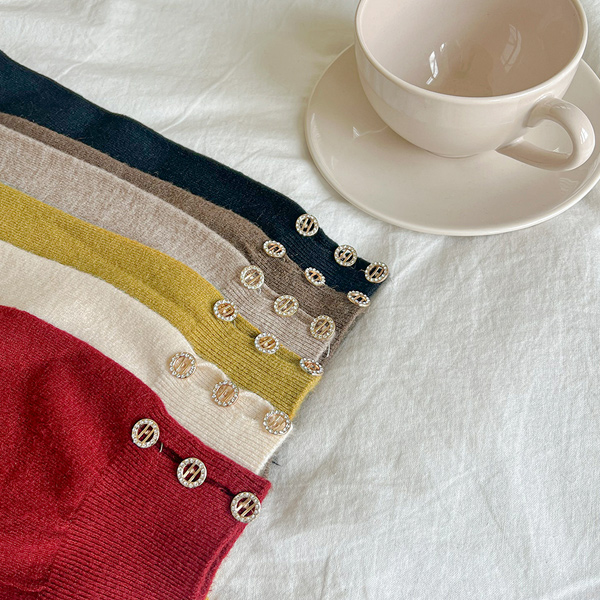 宝石 扣子 开叉 圆领 秋季 颜色 针织衫