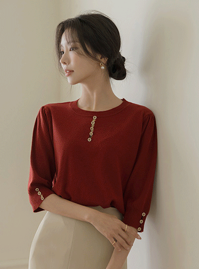 宝石 扣子 开叉 圆领 秋季 颜色 针织衫