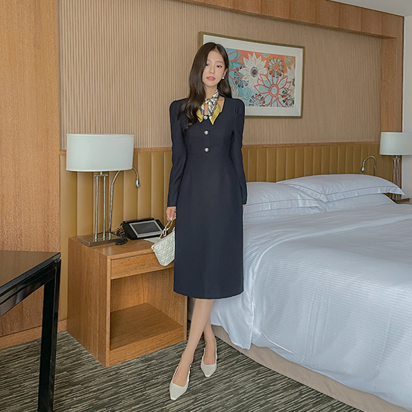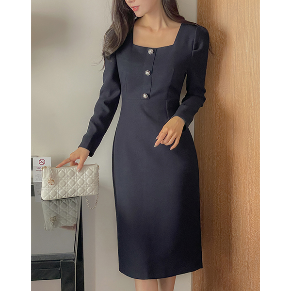샌디 方领 珍珠 连衣裙