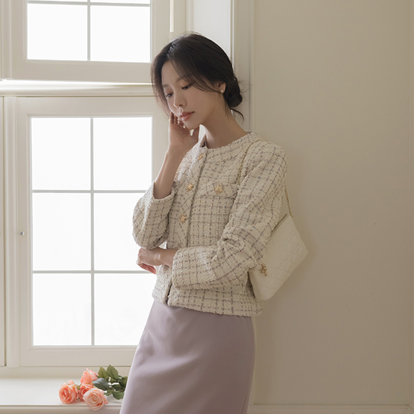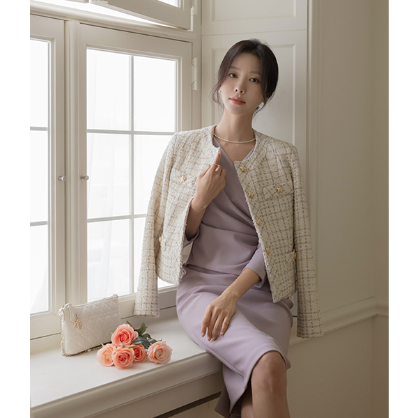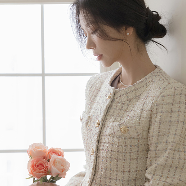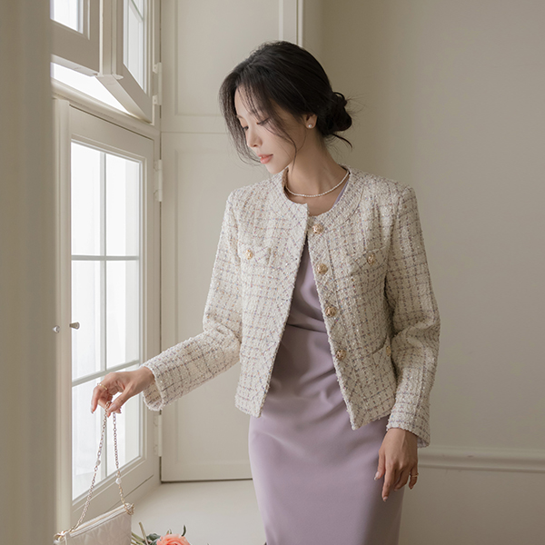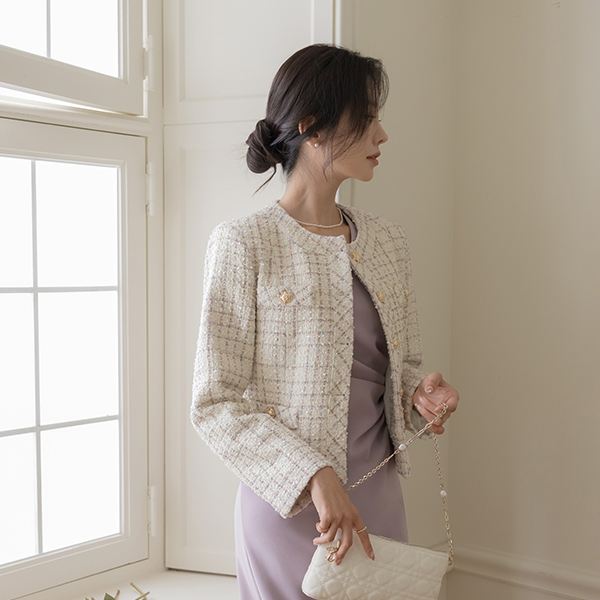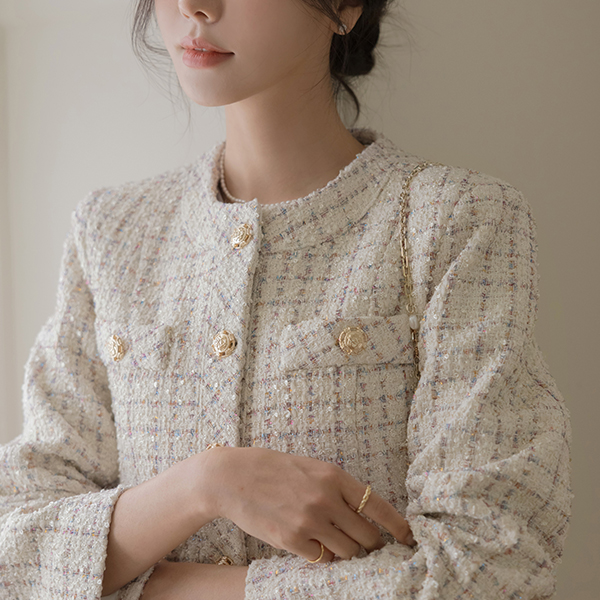 奢华裙 黄金 扣子 羊毛 混合 粗呢 夹克