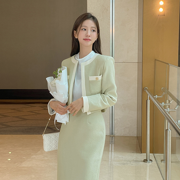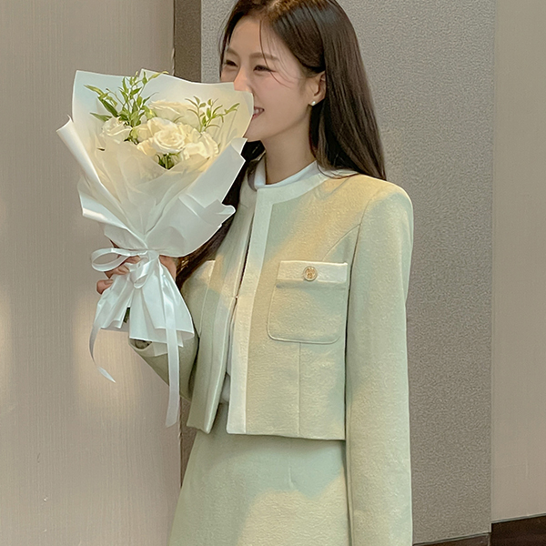 포엘 配色 线条 粗呢 Set-up 夹克