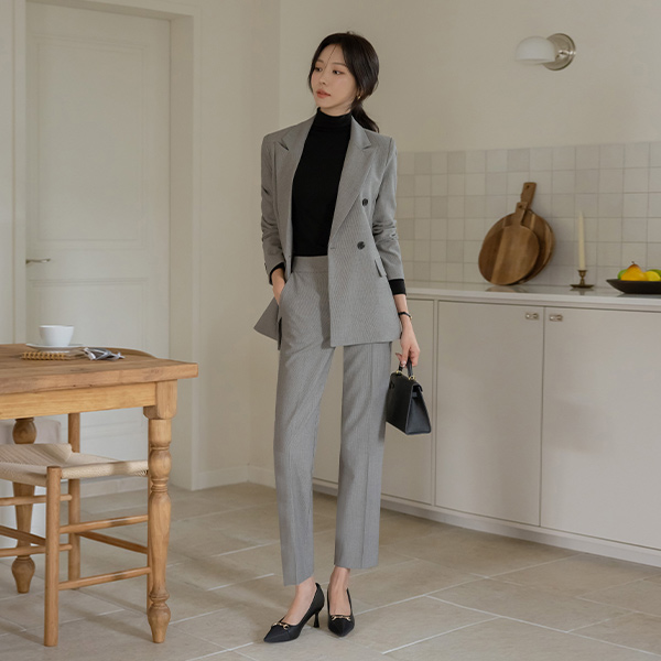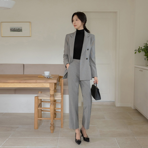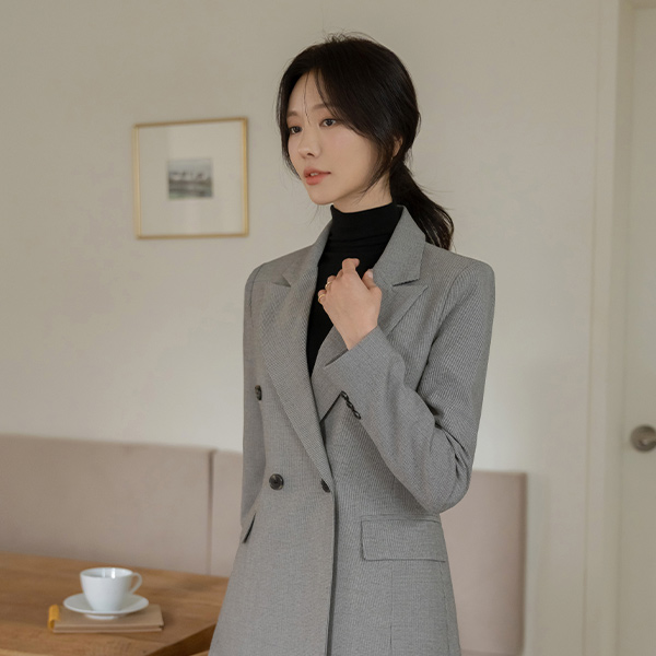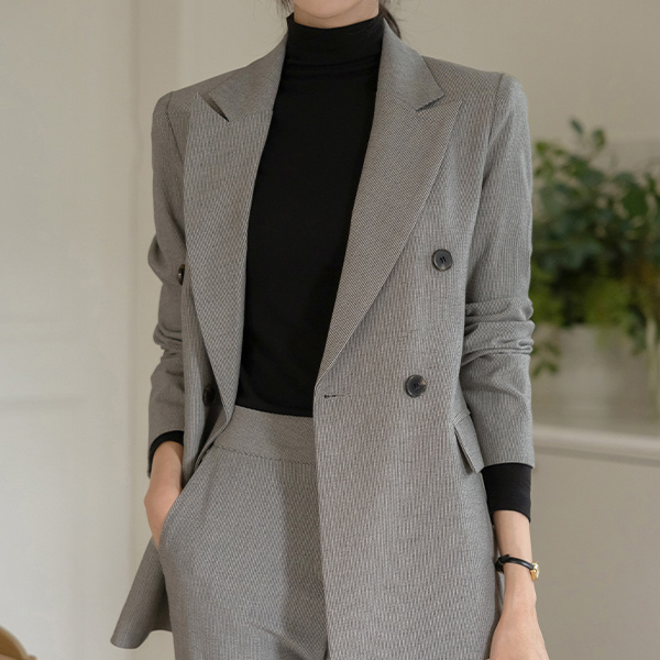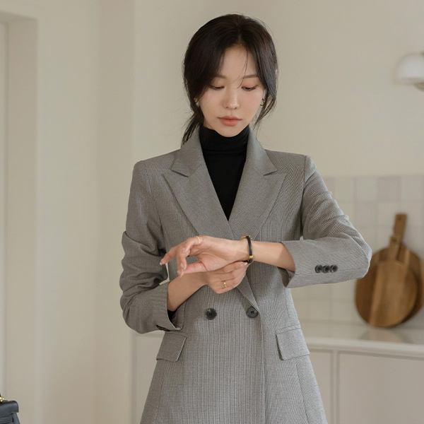 잔잔 格子 双 扣子 Set-up 夹克