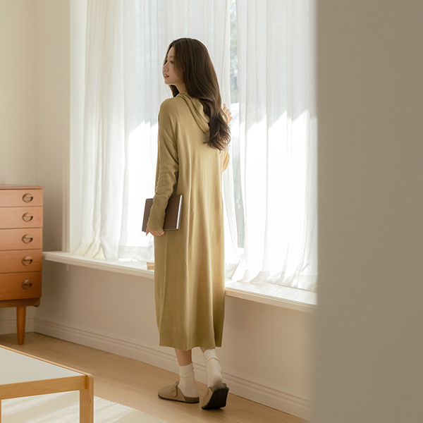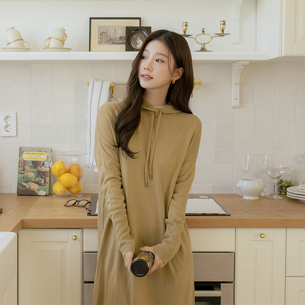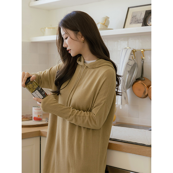 舒服 日常 带帽 针织衫 长款 连衣裙