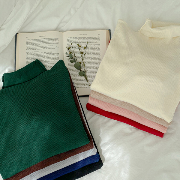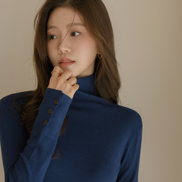 (1+1할인) 粘胶 扣子 袖 柔丝 高领 针织衫