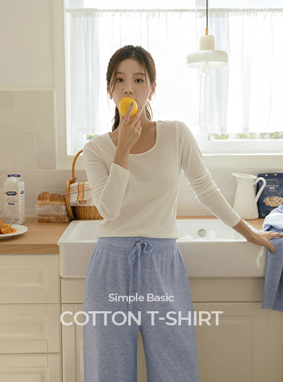 简单 基本 棉 长袖 T恤衫