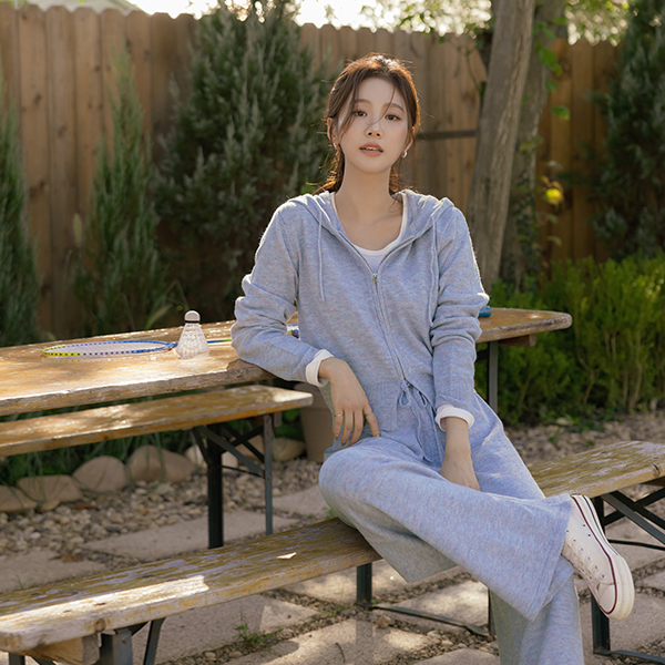 ODE 开士米 7分裤 针织衫 带帽 拉链卫衣