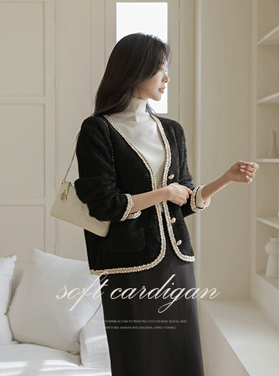 衬里 珍珠 扣子 柔丝 开衫