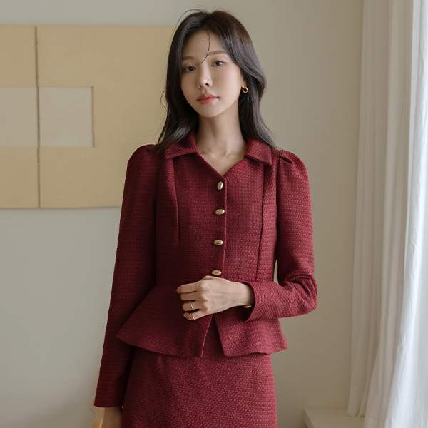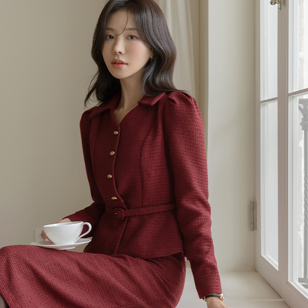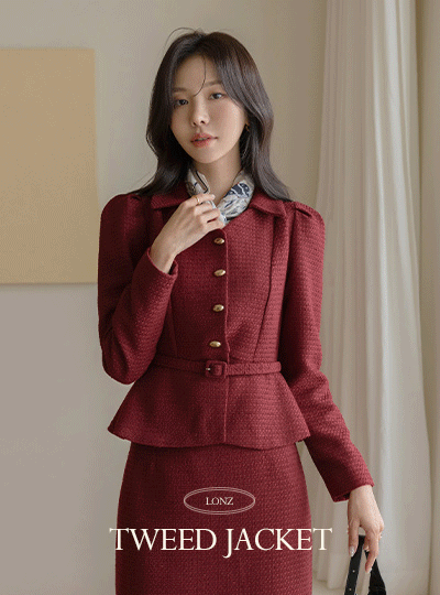 론즈 荷叶边 粗呢 腰带 Set-up 夹克