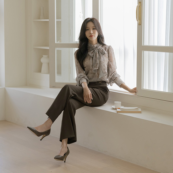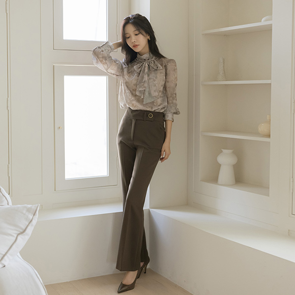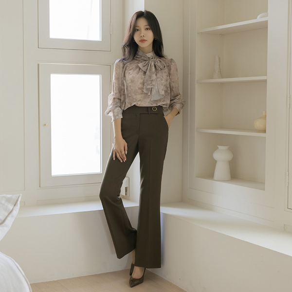 侧纽 扣带 装饰 弹力 喇叭 宽松长裤(fall) Ⅱ