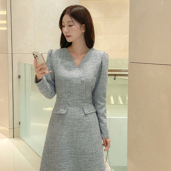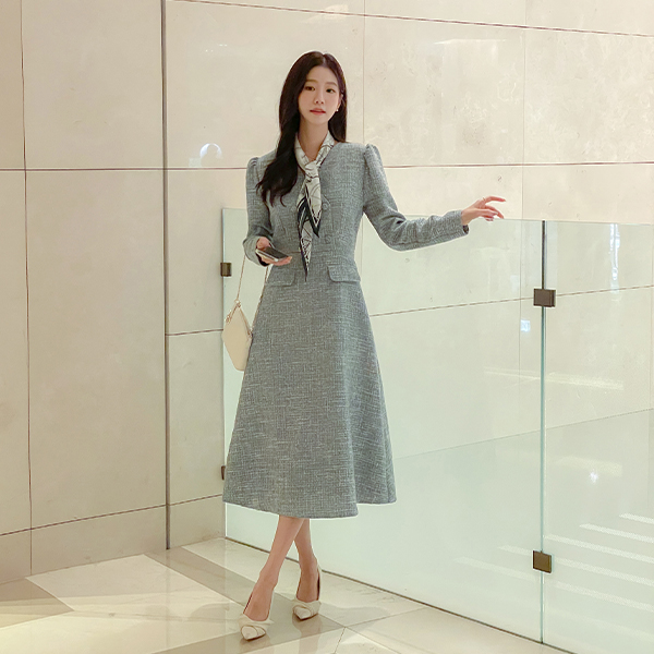 톤업 粗呢 羊毛 连衣裙