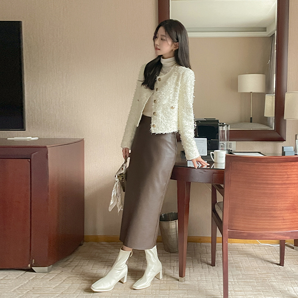 后面开衩 Eco 人造皮夹 H字型 裙子