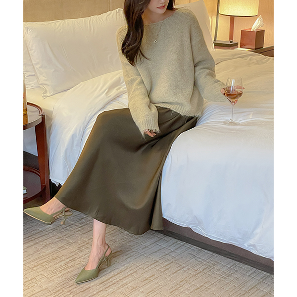 苗条 剪影 羊毛 宽松 领 针织衫