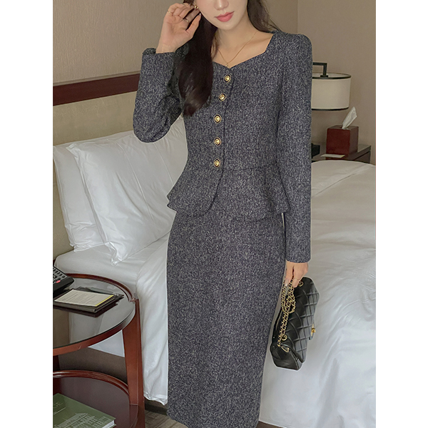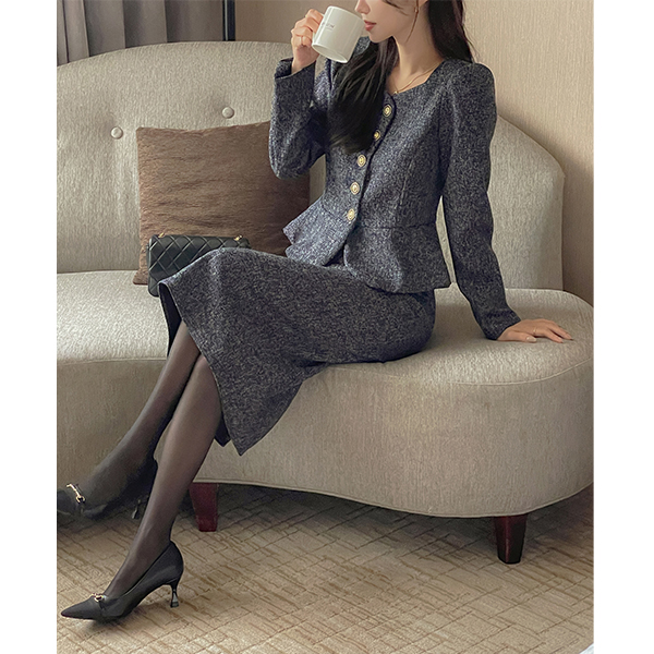 클레벨 粗呢 荷叶边 Set-up 夹克