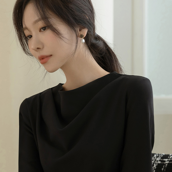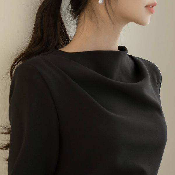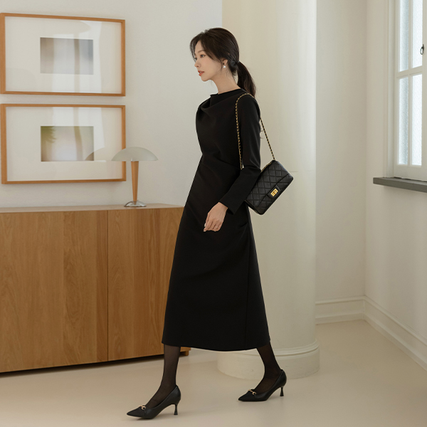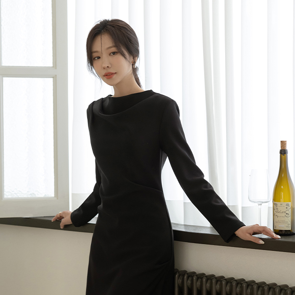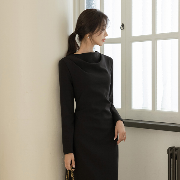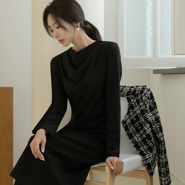 몸매 调整型 쫀득 半高领 褶皱 连衣裙