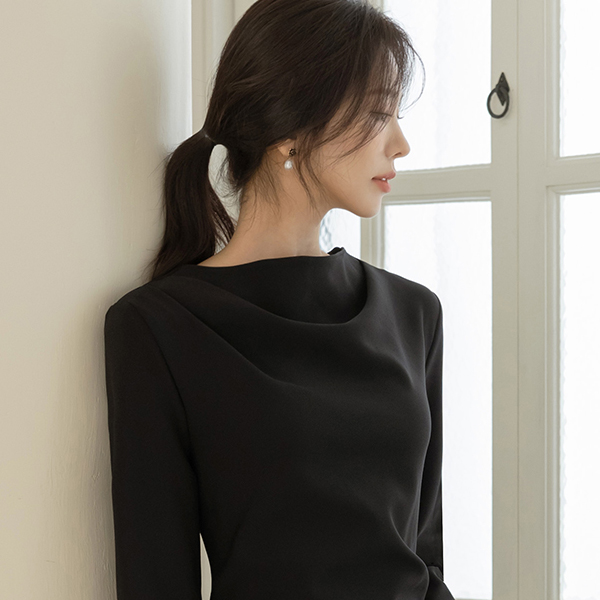 몸매 调整型 쫀득 半高领 褶皱 连衣裙