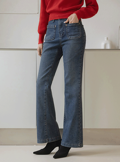 华丽 松紧带 拉绒 喇叭 牛仔色 裤子