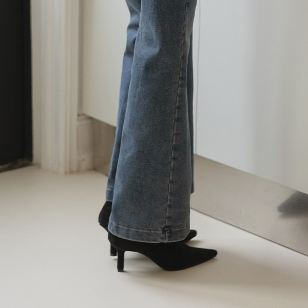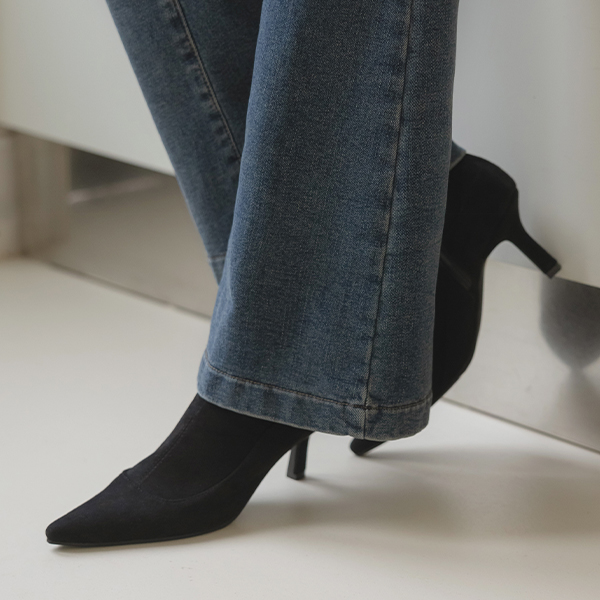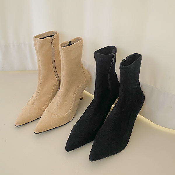 柔软的 翻毛皮 脚踝 高跟靴子