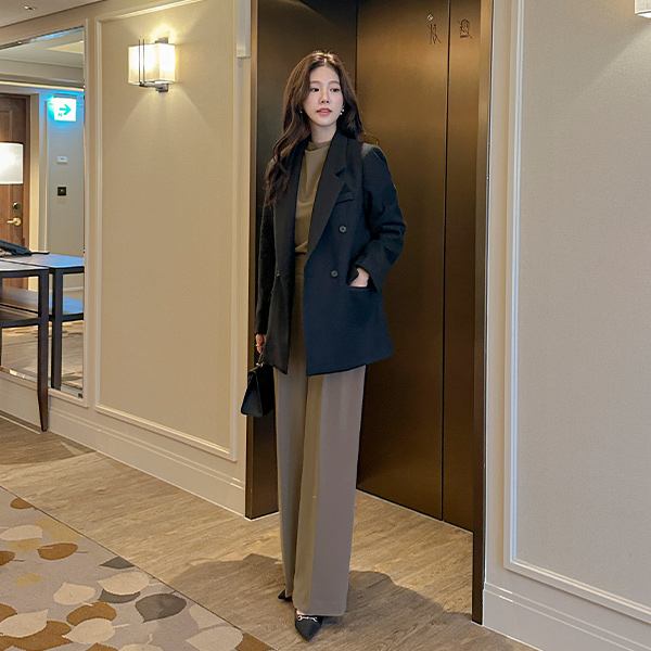 柔软的 双 扣子 羊毛 基本 短上衣 夹克