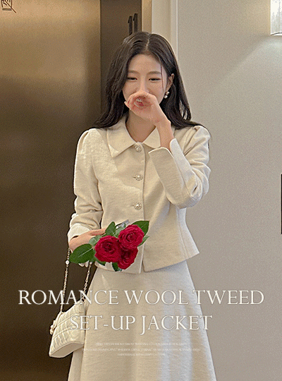 浪漫史 镶钻 扣子 羊毛 粗呢 Set-up 夹克