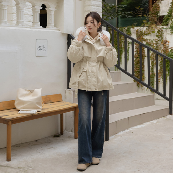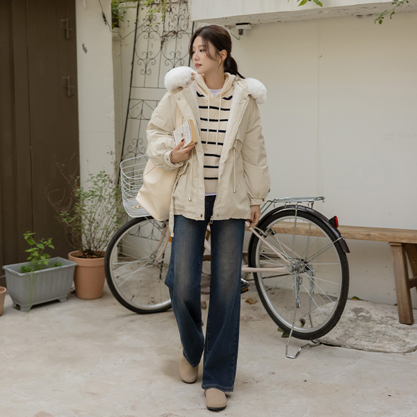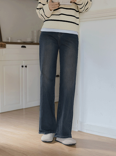 复古 内衬 拉绒 弹力 宽松 牛仔色 裤子