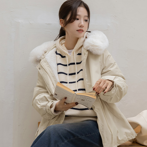 루밍 稍厚的 柔软的 带帽 针织衫