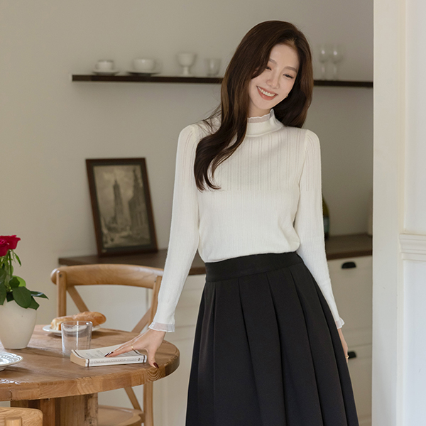浪漫 雪纺 分层 高翻领 粘胶 条绒 针织衫