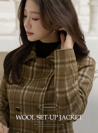 柔软的 羊毛 格子 双 扣子 Set-up 夹克