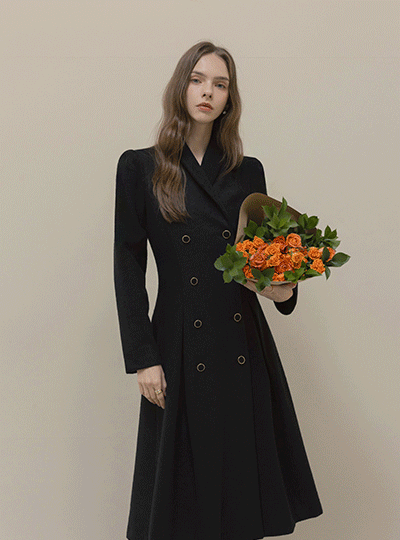 古典 披巾领 A字型 羊毛 粗呢 连衣裙