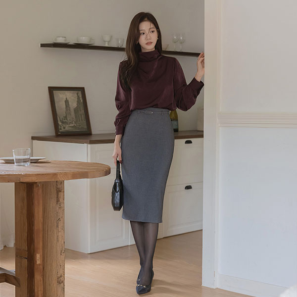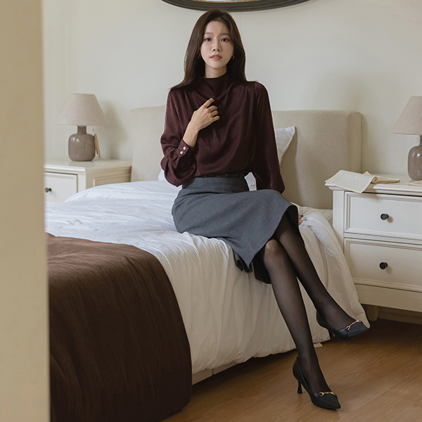 有光泽 褶皱 半高领 罩衫