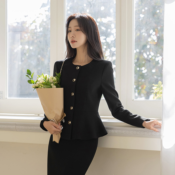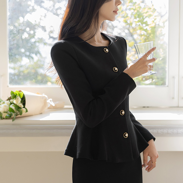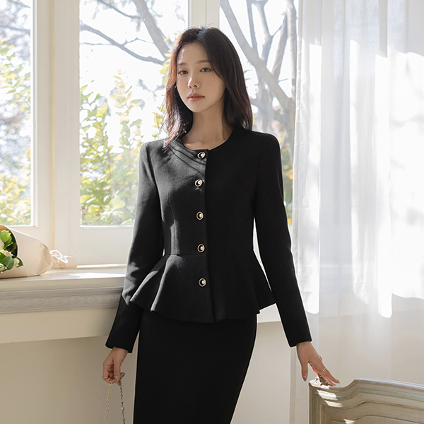 Jane 黄金环 柔软的 荷叶边 Set-up 夹克