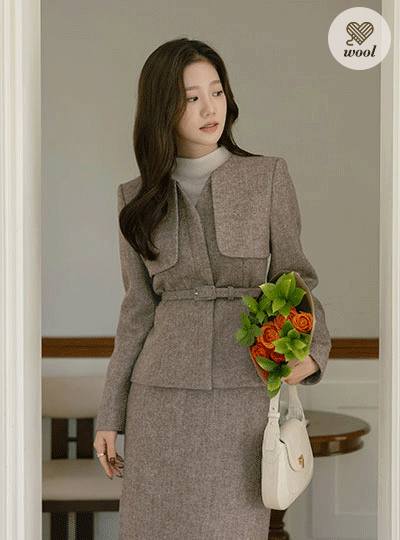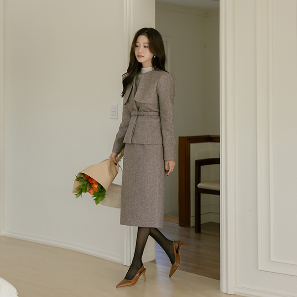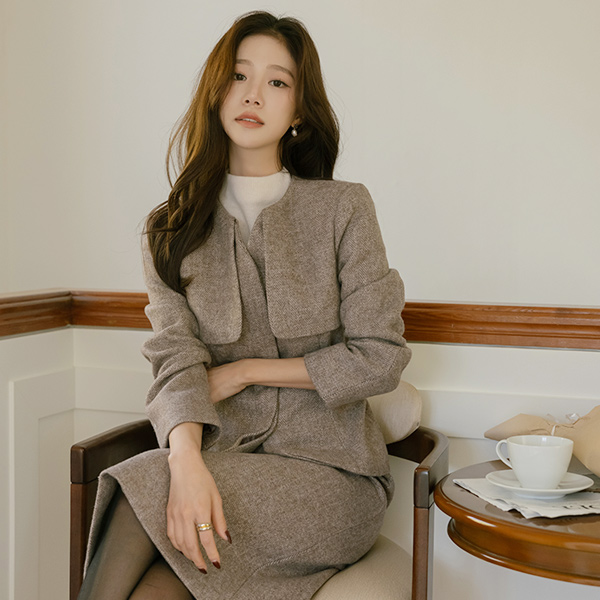 人字呢 稍厚的 羊毛 隐藏 扣子 Set-up 夹克