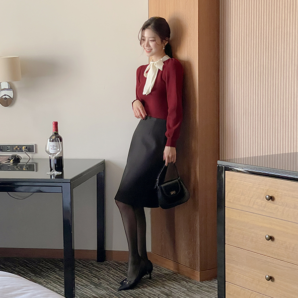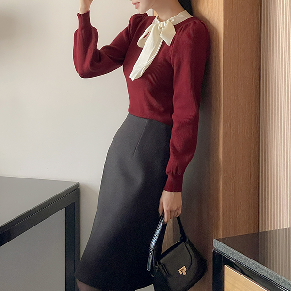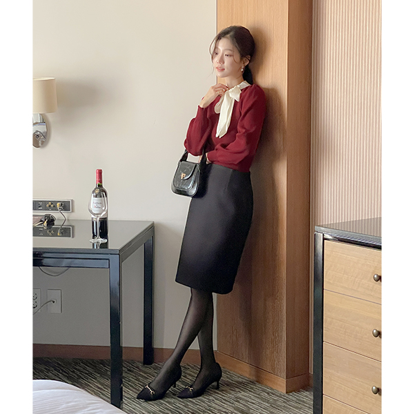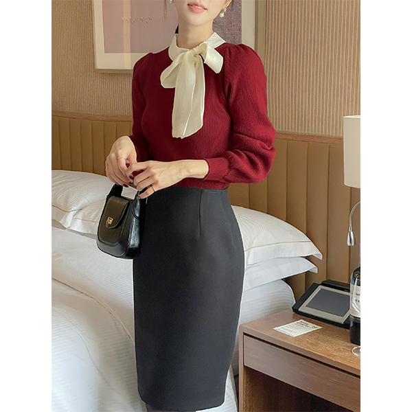 基本 H字型 羊毛 中长 裙子