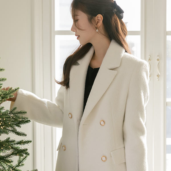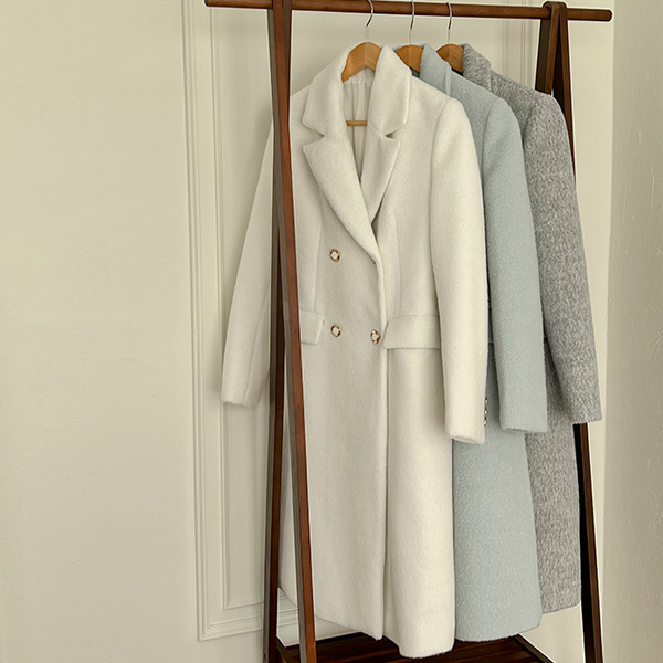 柔软的 柔色 颜色 双 扣子 羊毛 大衣