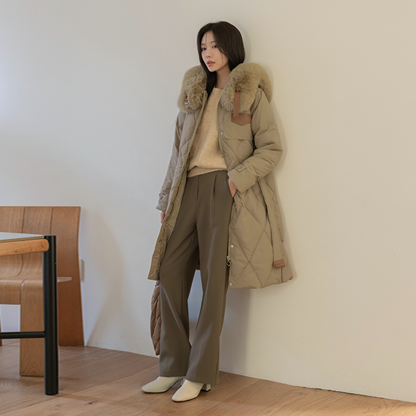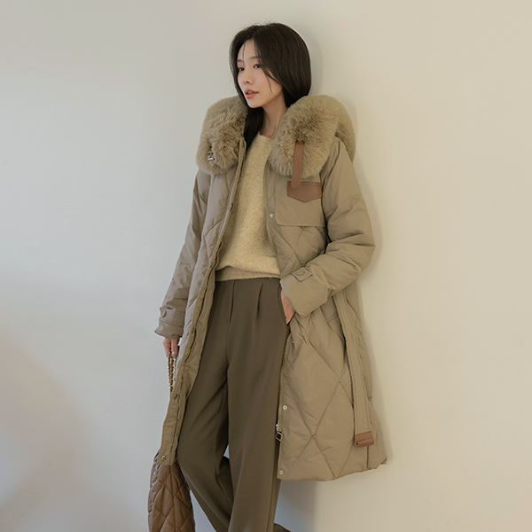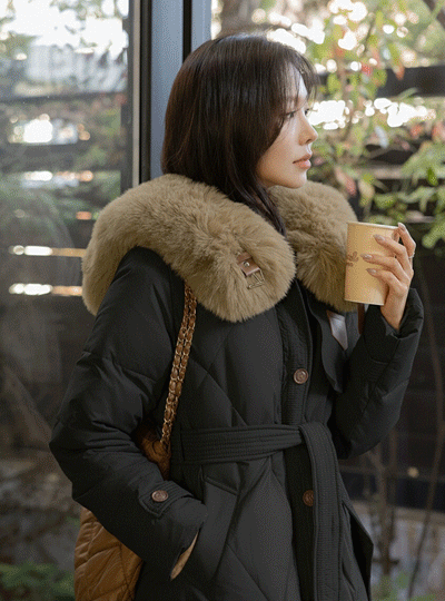 풍성 毛皮草 领子 绗缝 鸭绒 羽绒服