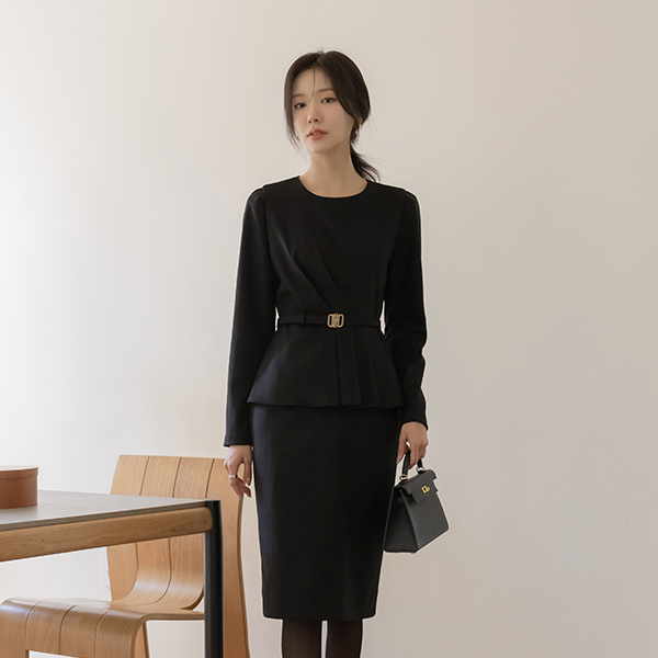 枫叶 两件套 风格 腰带 (套装) 连衣裙