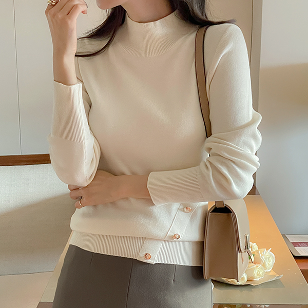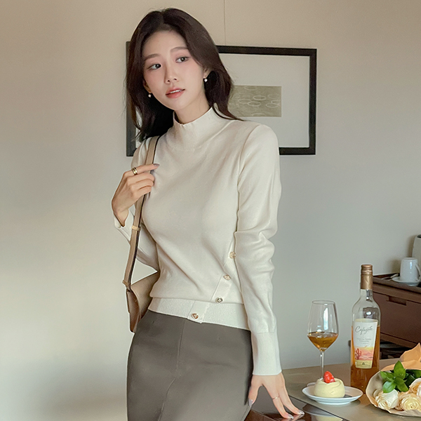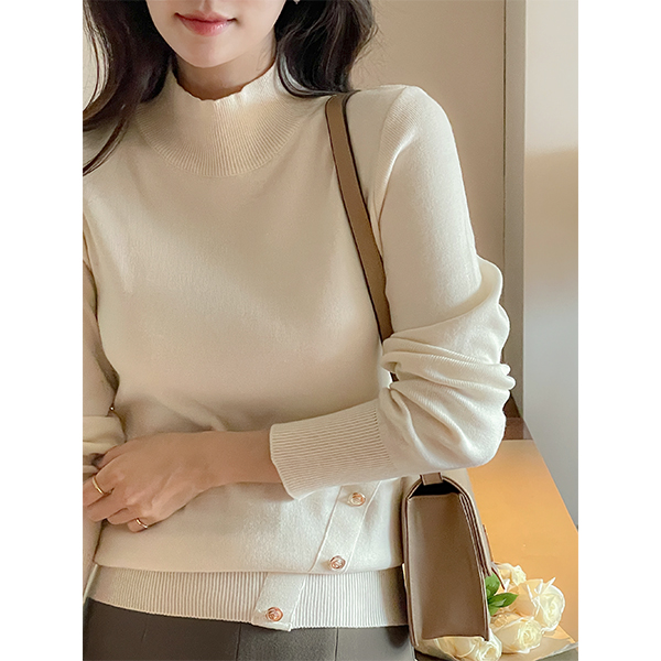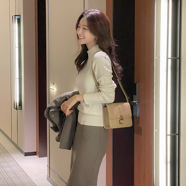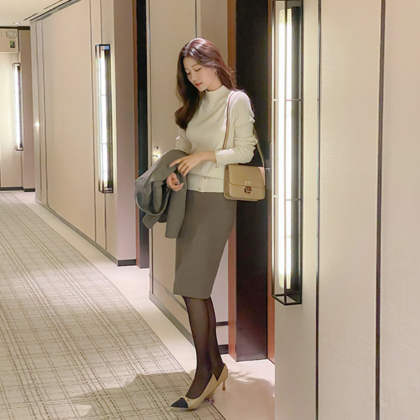简单 开衩 中长 裙子(衬里加绒)