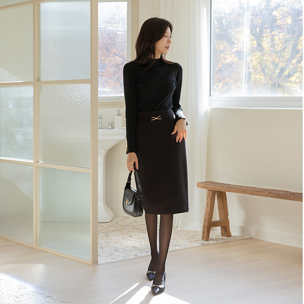 开衩 纽扣 반목넥 针织衫