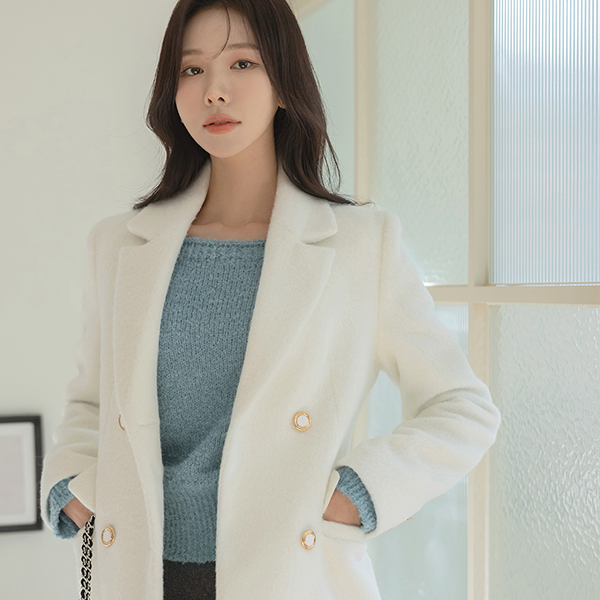 柔软的 柔色 颜色 双 扣子 羊毛 大衣